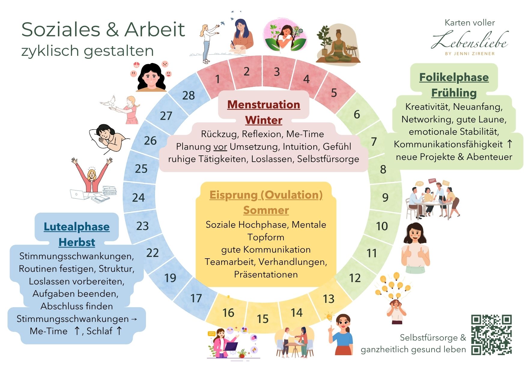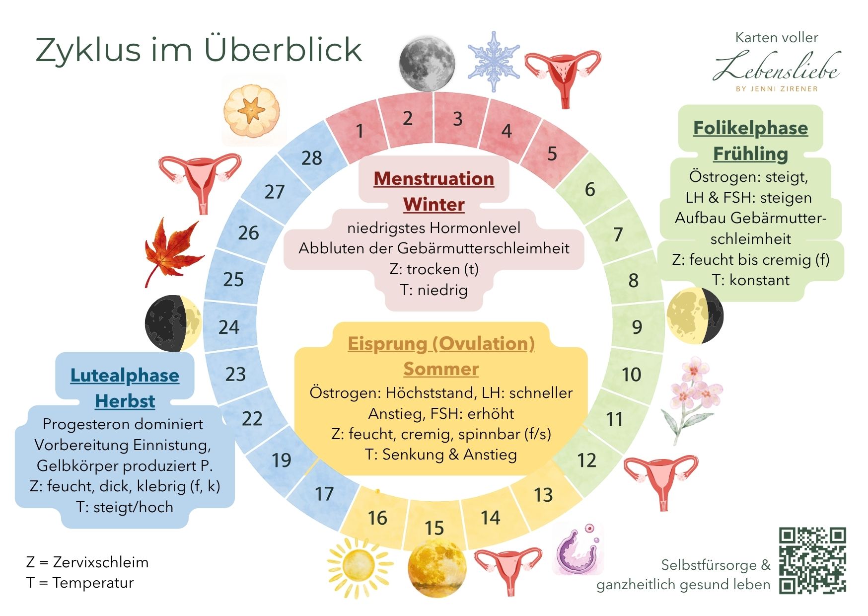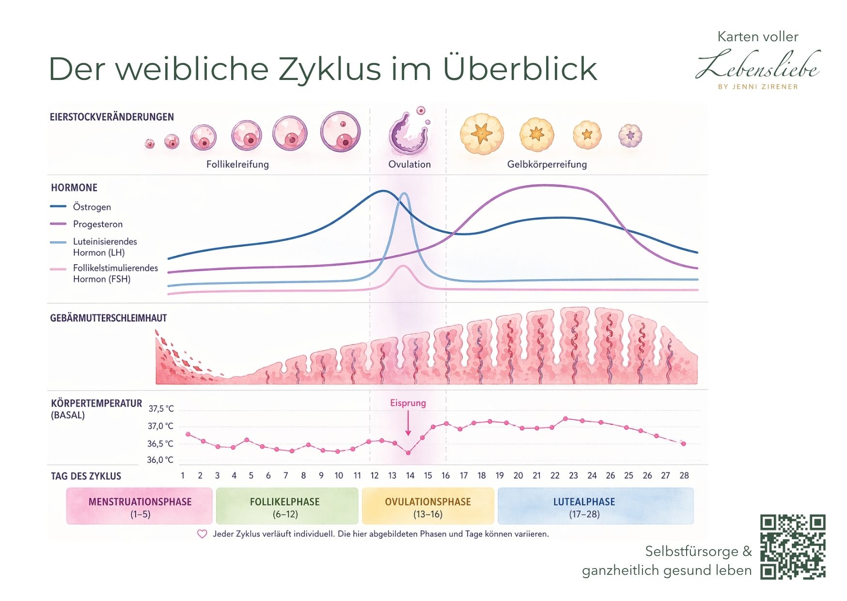 Mit fundierten Wissensimpulsen, klar aufbereiteten Grafiken und alltagstauglichen Reflexionsimpulsen unterstützen sie dich dabei, deinen Körper, deine Bedürfnisse und deine Energie im Verlauf deines Zyklus neu kennenzulernen und zu unterstützen.
