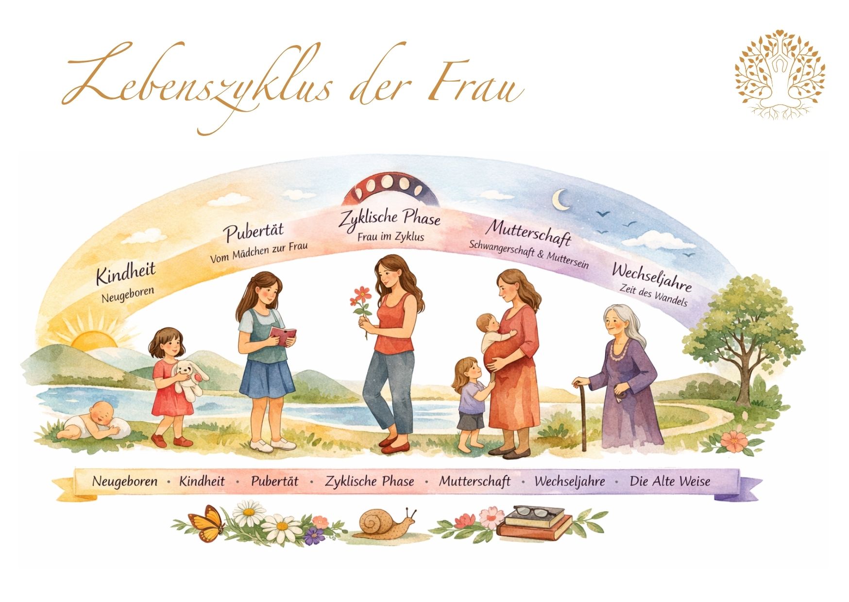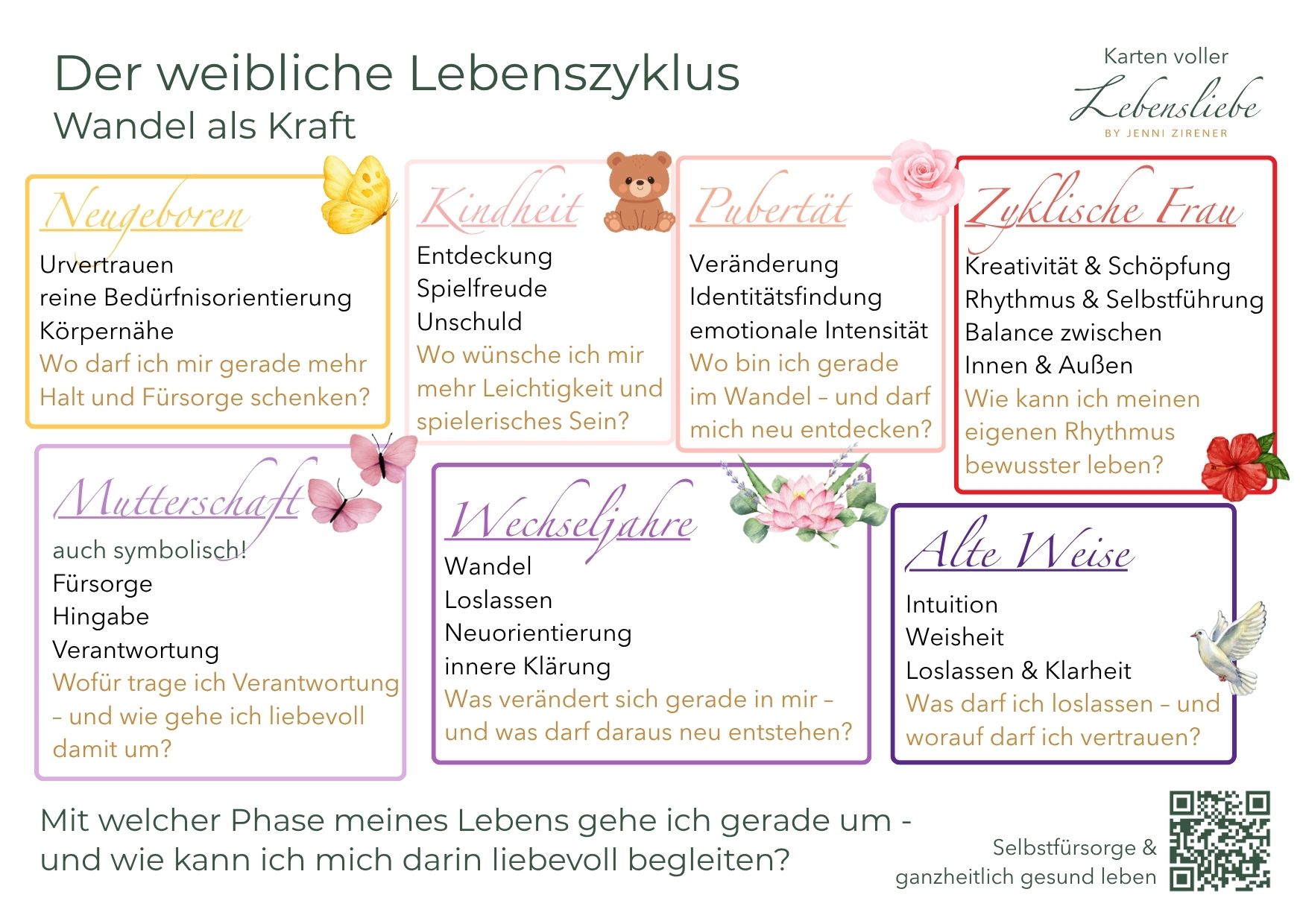- Set aus 10 Bildungskarten (Postkartenformat) rund um ganzheitliche Frauengesundheit und zyklisches Leben