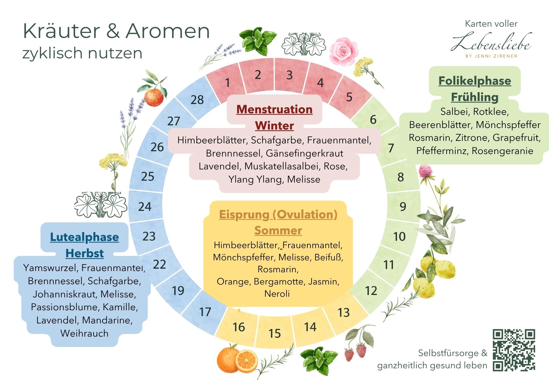 - Themen: Zyklus, Hormone, Ernährung, Bewegung & Sport, Regeneration, Arbeit & Soziales, Kräuter & Aromen